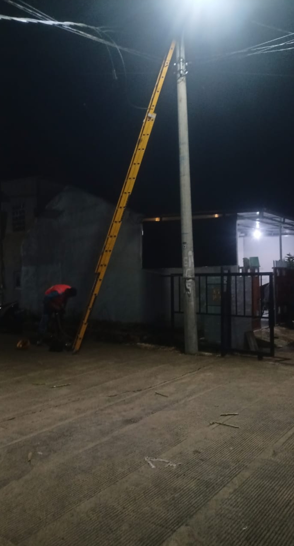Perbaikan kabel listrik putus akibat hujan deras
